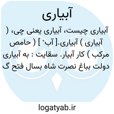 (کشاورزی): توزیع و هدایت آب به پای بوتهها یا درختان. شغل و عمل آبیار.