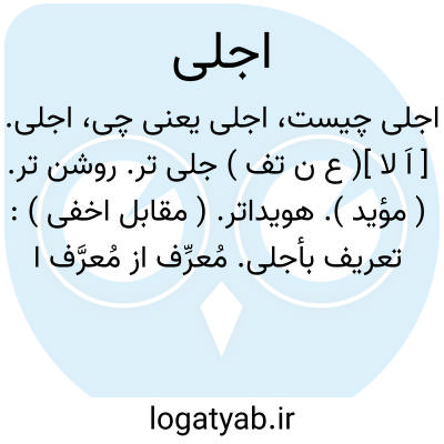 اجلی. [ اَ لا ]( ع ن تف ) جلی تر. روشن تر. ( مؤید ). هویداتر. ( مقابل اخفی ): تعریف بأجلی. مُعرِّف از مُعرَّف اجلی باید.