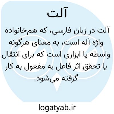آلت در زبان فارسی، که هم‌خانواده واژه «آله» است، به معنای هرگونه واسطه یا ابزاری است که برای انتقال یا تحقق اثر فاعل به مفعول به کار گرفته می‌شود. این واژه کارکردی ماهوی دارد و بر تسهیل و اجرای عملیات تأکید می‌کند؛ به طوری که بدون آن، تأثیر یا عملکرد مورد نظر به طور کامل یا صحیح محقق نخواهد شد. از منظر کاربردی، می‌توان آن را به «افزار»، «ابزار»، «دست‌افزار»، و «ساز و کار» ترجمه کرد، که همگی به ماهیت کارکردی آن به عنوان یک وسیله کمکی اشاره دارند.
