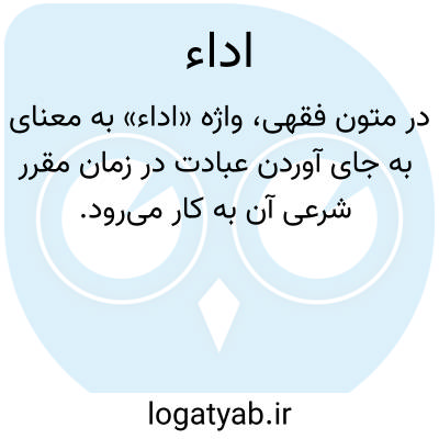 [ویکی فقه] اداء به انجام عبادت در وقت مقرَّرِ شرعی اطلاق می شود و در باب های طهارت، صلات و صوم به کار رفته است.