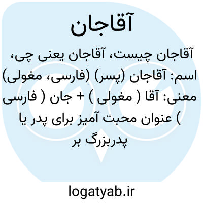 معنی: آقا ( مغولی ) + جان ( فارسی ) عنوان محبت آمیز برای پدر یا پدربزرگ