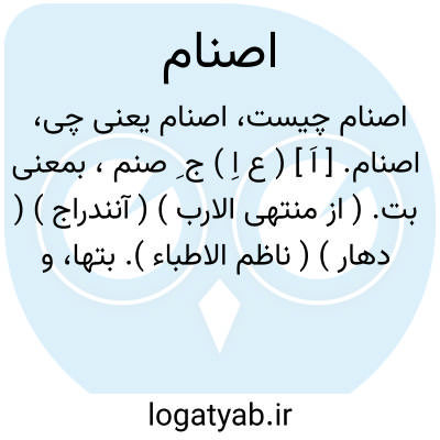 ما بت پرستی میکنیم آنگه چنین اصنام را.سعدی.رجوع به صنم و بت شود. || و در تداول حکمت اشراق، اصنام یا ارباب اصنام را مرادف مُثُل آرند. سهروردی در ذیل عنوان مُثُل افلاطونی گوید: آیا شما اعتراف نکرده اید که صورت جوهر با اینکه عرض است در ذهن حاصل می آید، چنانکه گفته اید هر شی را وجودی در اعیان و وجودی در اذهان است ؟ پس هرگاه روا باشد که حقیقت جوهری در ذهن حاصل آید با اینکه عرض باشد، روا خواهد بود که در عالم عقلی ماهیت ها بذات خود قائم باشند و آنها را در این عالم اصنامی باشد که بذات خود قائم نباشند، چه آنها برای کمال غیر خود باشند و کمال ماهیت های عقلی را ندارند چنانکه مثل ماهیت های خارج از ذهن از جوهرها در ذهن حاصل آیند ولی به ذات خود قائم نباشند، چه آنها کمال یا صفتی برای ذهن اند و دارای آنچنان استقلالی همانند ماهیت های خارج نیستند تا به ذات خود قائم باشند. ( از حکمت اشراق ص 92 ). و در ص 159 آرد: و هرچند استعمال مثال در نوع مادی یا صنم فزونی یابد، چنانکه گویی بدان اختصاص یافته است، همانا در رب النوع بکار رفته است، زیرا هر یک از آن دو در حقیقت از وجهی مثالی برای دیگریست، چه همچنانکه صنم مثالی برای رب صنم در عالم حس است همچنین رب صنم مثالی برای صنم در عالم عقل است، و بهمین سبب ارباب اصنام را مُثُل خوانند. رجوع به ص 143 و 156 و 166 و 177 و 224 و 205 همان کتاب و مُثُل شود.