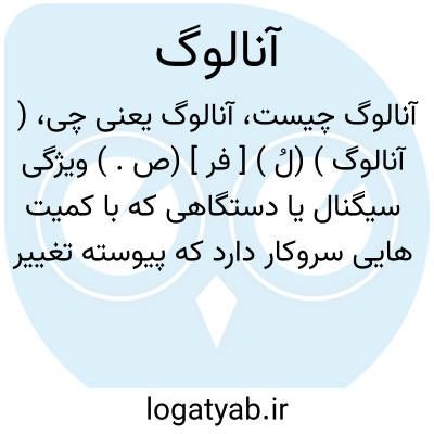 ( آنالوگ ) (لُ ) [ فر ] (ص. ) ویژگی سیگنال یا دستگاهی که با کمیت هایی سروکار دارد که پیوسته تغییر می کند. مق. دیجیتال.