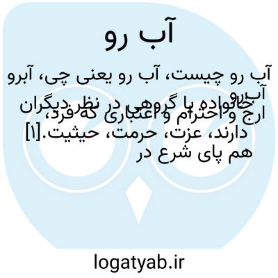 ارج و احترام و اعتباری که فرد، خانواده یا گروهی در نظر دیگران دارند، عزت، حرمت، حیثیت.[۱] هم پای شرع در کار بود و هم عرف و آبرو. «اسلامی ندوشن»