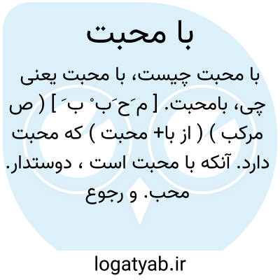 بامحبت. [ م َح َب ْ ب َ ] ( ص مرکب ) ( از با+ محبت ) که محبت دارد. آنکه با محبت است، دوستدار. محب. و رجوع به محب شود.