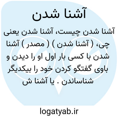 ( آشنا شدن ) ( مصدر ) آشنا شدن با کسی بار اول او را دیدن و باوی گفتگو کردن خود را بیکدیگر شناساندن. یا آشنا شدن بعلمی ( صنعتی ) اندکی فرا گرفتن آن.