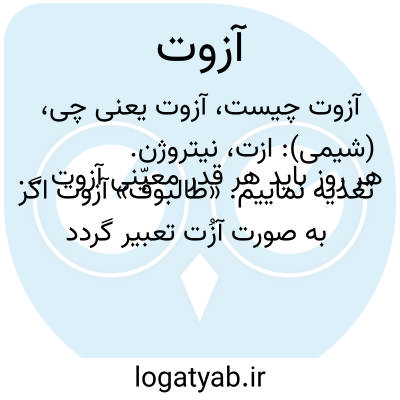 (شیمی): ازت، نیتروژن. هر روز باید هر قدر معیّنی آزوت... تغذیه نماییم. «طالبوف»