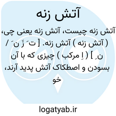 ( آتش زنه ) آتش زنه. [ ت َ زَ ن َ / ن ِ ] ( اِ مرکب ) چیزی که با آن بسودن و اصطکاک آتش پدید آرند، خواه از دو چوب باشد که زبرین را زند و زیرین را زنده گویند، و خواه از آهن و سنگ بود که آن را سنگ و چخماق خوانند. زند و زنده. قداحه. مقدحه. چخماق: