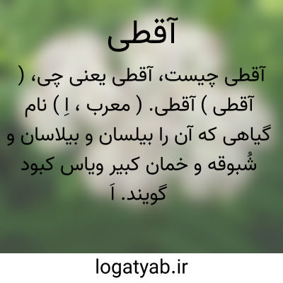 ( آقطی ) آقطی. ( معرب، اِ ) نام گیاهی که آن را بیلسان و بیلاسان و شُبوقه و خمان کبیر ویاس کبود گویند. اَقطی. اقطی بزرگ. نام آن بلاطینیه،سامبوکوس نیگرا، باشد.