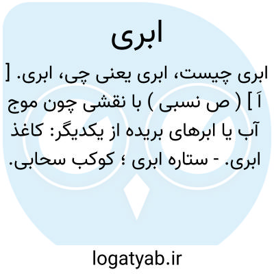 ابری. [ اَ ] ( ص نسبی ) با نقشی چون موج آب یا ابرهای بریده از یکدیگر: کاغذ ابری.