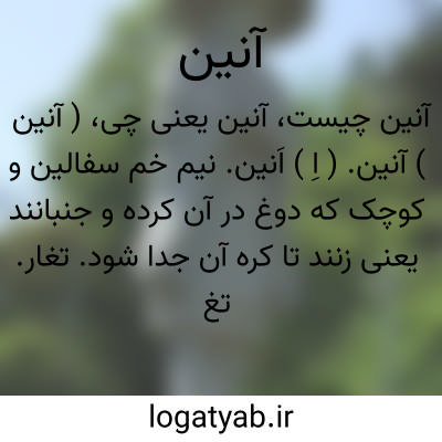 انین. [ اَ ] ( اِ ) ظرفی سفالی مانند سبو و خمچه بزرگ که دوغ در آن کنند و بجنبانند تا مسکه ( روغن و کره ) جدا گردد. ( برهان ) ( ناظم الاطباء ) ( آنندراج ) ( انجمن آرا ).