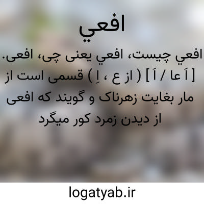 افعی. [ اَ ] ( از ع، اِ )همان افعی با الف مقصوره است که در فارسی بکسر عین خوانند. مار بزرگ خبیث. شیبا. ( ناظم الاطباء ). نوعی مار سمی خطرناک که در سنگلاخها بین خار و خاشاک یافت شود. در دهان این مار علاوه بر دندانهای کوچک تغذیه ای دو دندان قلاب مانند در آرواره بالا وجود دارد که بطرف عقب دهان خمیده است. درون این قلاب مجرایی است که بغده زهر راه دارد. ( فرهنگ فارسی معین ):