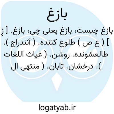 بازغ. [ زِ ] ( ع ص ) طلوع کننده. ( آنندراج ). طالعشونده. روشن. ( غیاث اللغات ). درخشان. تابان. ( منتهی الارب ) ( ناظم الاطباء ). تابنده. برآینده. ج، بَوازِغ. درخشنده. نورگسترنده:
