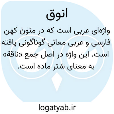 واژه‌ای عربی است که در متون کهن فارسی و عربی معانی گوناگونی یافته است. این واژه در اصل جمع «ناقة» به معنای شتر ماده است، اما در برخی منابع لغوی همچون منتهی‌الأرب، اقرب‌الموارد و ناظم‌الاطباء، معنای دیگری نیز برای آن آمده است. در برخی متون، «انوق» به پرنده‌ای شکاری و مردارخوار اشاره دارد که همان «عقاب» یا به تعبیر دیگر «رَخمه» است. این پرنده گاه با ویژگی‌های افسانه‌ای و رمزی در زبان و فرهنگ فارسی و عربی همراه شده است.