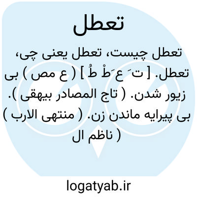 تعطل. [ ت َ ع َطْ طُ ] ( ع مص ) بی زیور شدن. ( تاج المصادر بیهقی ). بی پیرایه ماندن زن. ( منتهی الارب ) ( ناظم الاطباء ) ( از آنندراج ) ( از اقرب الموارد ). || بیکار شدن. ( تاج المصادر بیهقی ). بیکار ماندن. ( غیاث اللغات ) ( آنندراج ). بیکار بودن مرد و جز آن. ( منتهی الارب ) ( ناظم الاطباء ) ( از اقرب الموارد ). بیکاری. ( نصاب ).