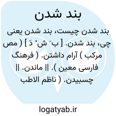 ( مصدر ) ۱- آرام داشتن:( روی پا بند نشد. ) ۲ - ماندن. ۳ - چسبیدن. ۴ - محکم شدن.
