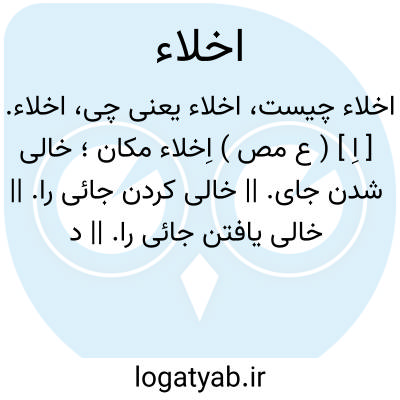 اخلاء. [ اِ ] ( ع مص ) اِخلاء مکان؛ خالی شدن جای. || خالی کردن جائی را. || خالی یافتن جائی را. || در جای خالی و بی مزاحم افتادن. || خلوت کردن با. در خلوت بردن کسی را: اخلاه معه. || تهی شکم شدن از طعام. || علفناک شدن زمین. با گیاه بسیار شدن زمین. ( تاج المصادر بیهقی ): اخلت الارض. || گیاه رویانیدن: اخلی اﷲ الماشیة؛ رویانید خدای تعالی علف را برای مواشی.