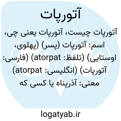 اسم: آتورپات (پسر) (پهلوی، اوستایی) (تلفظ: atorpat) (فارسی: آتورپات) (انگلیسی: atorpat)