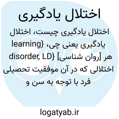 {learning disorder, LD} [روان شناسی] هر اختلالی که در آن موفقیت تحصیلی فرد با توجه به سن و آموزش و هوش، براساس آزمون های معیار خواندن و نوشتن و محاسبه از آنچه انتظار می رود بسیار کمتر باشد