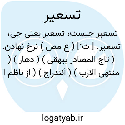 گفت در ری چیست تسعیر ای عجب.مولوی.... چند از مال دیوان که تسعیر اندک داشت به بهای گران به بقالان به طرح داده بود. ( مجالس سعدی ).
