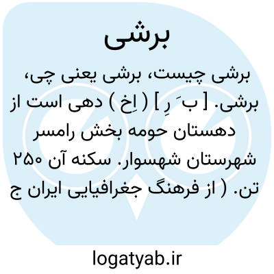 برشی. [ ب َ رِ ] ( اِخ ) دهی است از دهستان حومه بخش رامسر شهرستان شهسوار. سکنه آن 250 تن. ( از فرهنگ جغرافیایی ایران ج 2 ).
