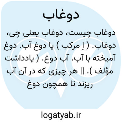 ( دوغ آب ) ( اسم ) ۱ - دوغاب. ۲ - آشی است که از شیر سازند.