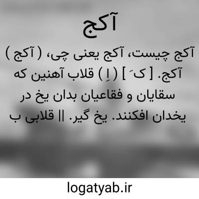 ( آکج ) آکج. [ ک َ ] ( اِ ) قلاب آهنین که سقایان و فقاعیان بدان یخ در یخدان افکنند. یخ گیر. || قلابی بزرگ آهنین بر سر چوبی کرده که بدان کشتی دشمن فراکشیدندی یا مرد از کشتی دشمن ربودندی: