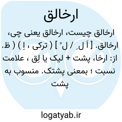 ارخالق. [ اَ ل ِ / ل ُ ] ( ترکی، اِ ) ( ظ. از: ارخا، پشت + لیک یا لِق، علامت نسبت؛ بمعنی پشتک. منسوب به پشت )قبائی کوتاه تر در زیر قبای مردان. جامه ای که طلبه علوم دین و کسبه زیر قبا پوشیدندی. || نیم تنه روئین زنان. || نوعی از قماش نازک.