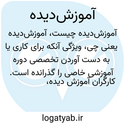 ویژگی آنکه برای کاری یا به دست آوردن تخصصی دوره آموزشی خاصی را گذرانده است. کارگران آموزش دیده، نیروهای آموزش دیده.