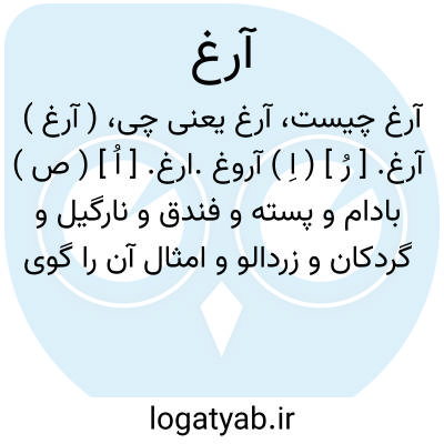 ارغ. [ اُ ] ( ص ) بادام و پسته و فندق و نارگیل و گردکان و زردالو و امثال آن را گویند که درون آن تیز و تلخ و تند شده باشد. ( جهانگیری ) ( برهان قاطع ) ( آنندراج ). گردکانی که بدبو و بدطعم شده باشد و آنرا بتازی خنز گویند بفتح خای معجمه و کسر نون و آخرش زای معجمه. ( فرهنگ سروری ). زَنِخ. ( فرهنگ رشیدی ). ( جهانگیری ) ( برهان قاطع ).