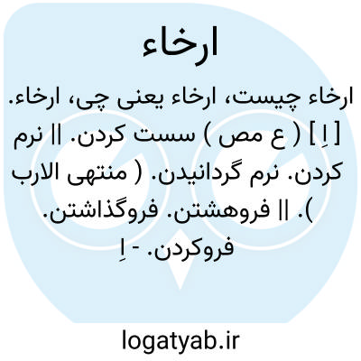 ارخاء. [ اِ ] ( ع مص ) سست کردن. || نرم کردن. نرم گردانیدن. ( منتهی الارب ). || فروهشتن. فروگذاشتن. فروکردن.