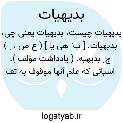 [ویکی فقه] بَدیهیّات (جمع ِ بدیهی )، اصطلاح و مبحثی در منطق (از ماده بدء که با تبدیل همزه به ها، در بدیئه و بداءه، به صورت بدیهه و بداهه به کار رفته است ).