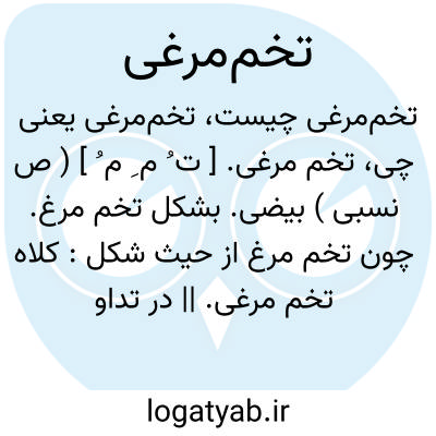 تخم مرغی. [ ت ُ م ِ م ُ ] ( ص نسبی ) بیضی. بشکل تخم مرغ. چون تخم مرغ از حیث شکل: کلاه تخم مرغی. || در تداول به فروشنده تخم مرغ هم اطلاق میشود.