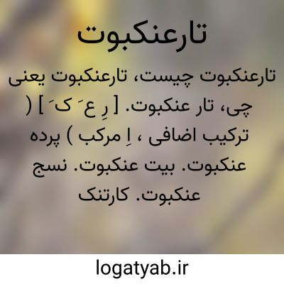 تار عنکبوت. [ رِ ع َ ک َ ] ( ترکیب اضافی، اِ مرکب ) پرده عنکبوت. بیت عنکبوت. نسج عنکبوت. کارتنک. دهنه. تنیده عنکبوت. دام عنکبوت. تنسته. کره. کرتینه. ابرکاکیا. ابرکاکیاب. ابرکاکیان. کناغ. رجوع به «تار» و «ابرکاکیا» شود.