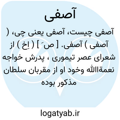 ( آصفی ) آصفی. [ ص َ ] ( اِخ ) از شعرای عصر تیموری، پدرش خواجه نعمةاﷲ وخود او از مقربان سلطان مذکور بوده و در اواخر عهد بخدمت سلطان حسین بایقرا پیوسته است. دیوانی بزرگ و چند مثنوی دارد. امیرعلی شیر نوائی او را در تذکره یادکرده است. وفات او به سال 920 یا 926 هَ.ق. است.