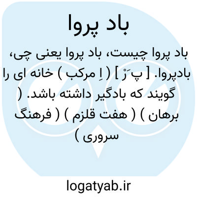 بادپروا. [ پ َرْ ] ( اِ مرکب ) خانه ای را گویند که بادگیر داشته باشد. ( برهان ) ( هفت قلزم ) ( فرهنگ سروری ) ( جهانگیری ) ( غیاث ). خانه ای را گویند که بادگیر داشته باشد که باددر آن آید و آنرا بادخوان و بادخن و بادخون گویند. ( آنندراج ) ( انجمن آرا ). رجوع به بادخوان، بادخن و بادخون شود. || گذرگاه باد و روزنی که بجهت آمدن باد گذارند. ( برهان ). خاقانی گوید: