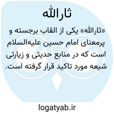 [ویکی شیعه] ثار اللَّه یا «ثاراللَّه فی الارض»، از القاب امام حسین(ع). تفسیرهای مختلفی از این اصطلاح شده است. از معروف ترین آنها این است که خداوند، خود منتقم خون اوست. بر اساس روایات، خداوند همه انسان ها را دعوت به خونخواهی حسین(ع) می کند و سرانجام اولیای آن امام، انتقام خون وی را خواهند گرفت.