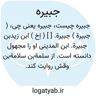( جبیرة ) جبیرة. [ ] ( اِخ ) ابن زیدبن جبیرة. ابن المدینی او را مجهول دانسته است. از سلمةبن سلامةبن وقش روایت کند. و معلوم نیست از او استماع حدیث کرده یا نه زیرا نمیگوید از او شنیدم [ سمعت ]. ( از لسان المیزان ).