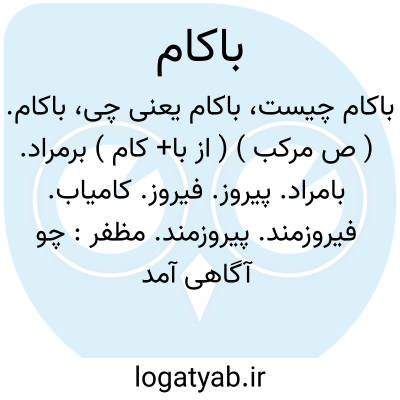 که باکام و با شادی آمد ز راه.فردوسی.و بهرام با مالهای بسیار بازگشت پیروز و باکام [ از هند ]. ( فارسنامه ابن البلخی ص 82 ). و رجوع به کام شود.
