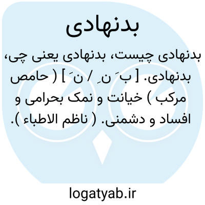 بدنهادی. [ ب َ ن ِ / ن َ ] ( حامص مرکب ) خیانت و نمک بحرامی و افساد و دشمنی. ( ناظم الاطباء ).