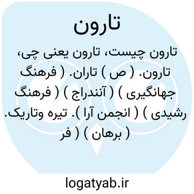 تارون. ( ص ) تاران. ( فرهنگ جهانگیری ) ( آنندراج ) ( فرهنگ رشیدی ) ( انجمن آرا ). تیره وتاریک. ( برهان ) ( فرهنگ نظام ). تاره. تاری. تارین. تار و تاریک. ( آنندراج ) ( انجمن آرا ) ( فرهنگ رشیدی ).