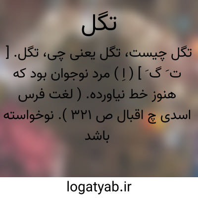 تگل. [ ت َ گ َ ] ( اِ ) مرد نوجوان بود که هنوز خط نیاورده. ( لغت فرس اسدی چ اقبال ص 321 ). نوخواسته باشد که خطش تمام دمیده نبود. امرد نوخط. ( فرهنگ جهانگیری ). نوخواب دیده و نوخط بود. ( لغت فرس اسدی چ هرن چ دبیرسیاقی ص 130 ). آنرا گویند که هنوز خط تمام درنیاورده باشد. ( صحاح الفرس، چ دکتر طاعتی ص 206 ):