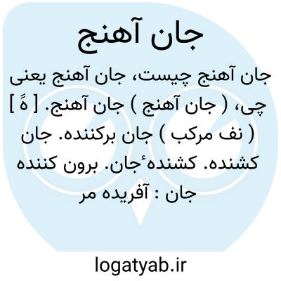 ( جان آهنج ) ۱- ( صفت ) برکشند. جان آنچه آدمی را از تن بر آورد. ۲- ( اسم ) احتضار جان کندن.