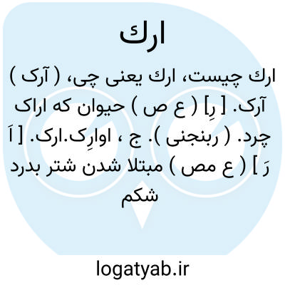 ارک. [ اَ رَ ] ( ع مص ) مبتلا شدن شتر بدرد شکم از خوردن اراک. ( منتهی الأرب ). خوردن شتر درخت اراک را. ( منتخب اللغات ) ( شمس اللغات ) ( کنز اللغات ). بیماری شتر از خوردن اراک.