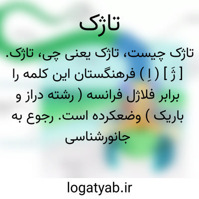 تاژک. [ ژَ ] ( اِ ) فرهنگستان این کلمه را برابر فلاژل فرانسه ( رشته دراز و باریک ) وضعکرده است. رجوع به جانورشناسی تألیف اسماعیل آزرم ص 23، 38، 60، 65، 68 و 73 و گیاه شناسی تألیف گل گلاب ص 2 و جانورشناسی عمومی تألیف دکتر فاطمی ص 10 شود.