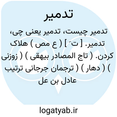 تدمیر. [ ت َ ] ( ع مص ) هلاک کردن. ( تاج المصادر بیهقی ) ( زوزنی ) ( دهار ) ( ترجمان جرجانی ترتیب عادل بن علی ). هلاک کردن و هلاکی افکندن بر کسی. ( منتهی الارب ) ( ناظم الاطباء ) ( از المنجد ) ( از اقرب الموارد ) ( از غیاث اللغات ) ( از المنجد ): و اذا اردنا ان نهلک قریة امرنا مترفیها ففسقوا فیها فحق علیها القول فدمرناها تدمیراً. ( قرآن 16/17 ).... فدمرناهم تدمیراً. ( قرآن 36/25 ).