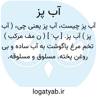 ( آب پز ) آب پز. [ پ َ ] ( ن مف مرکب ) تخم مرغ یاگوشت به آب ساده و بی روغن پخته. مسلوق و مسلوقه.