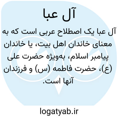 ( آل عبا ) آل عبا. [ ل ِ ع َ ] ( اِخ ) حضرت رسول اکرم و امیرالمؤمنین علی و فاطمه زهرا و حسن و حسین صلوات اﷲعلیهم. و از اینرو بایشان آل عبا گویند که زمانی در زیر یک عبا خفته بودند و برحسب اخبار جبرئیل نیز بیامد و در زیر آن عبا ششم آن گردید کسب شرف و مرتبت را. و بجای آل عبا، پنج تن و پنج تن آل عبا نیز گویند: