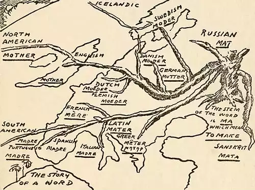 💡 یکی از نتایج پژوهشهای ریشهشناسی این بود که در پنج هزار سال پیش از میلاد مسیح قومی زندگی میکردهاند که بعدها به سرزمینهایی از هند تا اروپا مهاجرت کردهاند. زبان این قوم و خود این قوم با نامهای گوناگونی مانند سکایی، هندوژرمنی، هند و اروپایی، هندوکلتی، آرا اروپایی، یافثی، هندی توتی و سانسکریتی نامیده شد.