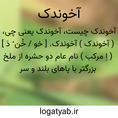 ( آخوندک ) ( اسم ) ۱ - آخوند کوچک. ۲ - حشرهای از راست. راست بالان که همشکلی کامل با محیط خود دارد و اکثر در لای شاخ و درختان خود را بشکل سبز شاخه های کوچک قرارمیدهد شیخک.
